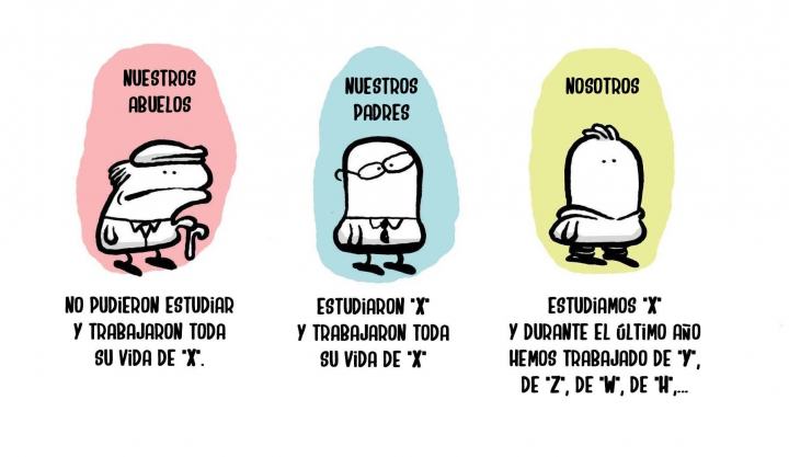 Nuestro caso fue exactamente al revés: fuimos la generación más consentida y mimada dentro de casa, pero al otro lado de la puerta el mundo era hostil, poco prometedor y notablamente desinteresado por conocer aquello que los jóvenes podíamos aportar.