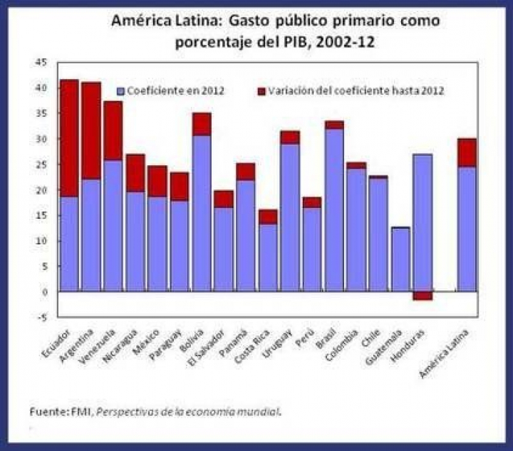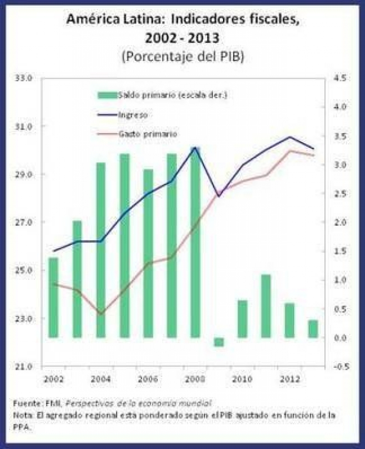 Sin embargo, estas políticas expansivas han resultado difíciles de revertir, y desde 2008 el aumento del gasto público supera significativamente el del ingreso. Tomando la totalidad del período 2002-12, el gasto primario ha subido de 24½% a 30% del PIB en promedio en toda América Latina. Ese aumento fue particularmente marcado en Argentina, Ecuador y Venezuela, donde la relación gasto primario/PIB dio un salto de 12 23 puntos porcentuales. En consecuencia, los saldos fiscales actuales son significativamente más débiles que previo a la crisis financiera internacional en la mayoría de los países.