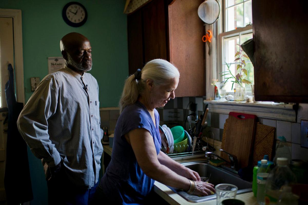 Y, finalmente, llegamos a nuestro último destino, el hogar de Shujaa Graham, un chalé muy curtido por años de vida familiar, en Takoma Park, Maryland. Una tranquila zona residencial a las afueras de Washington D.C. Allí vive Shujaa con su pareja desde hace 35 años, Phyllis Prentice, a la que conoció cuando ella era enfermera en prisión. Él es negro y ella blanca. Ambos están muy metidos en todo tipo de causas sociales y políticas. Tienen las paredes cubiertas con retratos del Che, Gerónimo y Martin Luther King. Y juntos han tenido tres hijos y estos a su vez les han dado seis nietos. Compartimos con toda la familia una cena de deliciosos cangrejos al estilo sureño. Cervezas. Mazorcas. Era el día del padre. Y una larga conversación sobre lo que significa ser hijos de una pareja interracial en su país; qué implica tener un padre que pasó por el corredor de la muerte; qué les parece que hoy Shujaa sea un apasionado orador contra la pena capital. "Es nuestro héroe", decían.