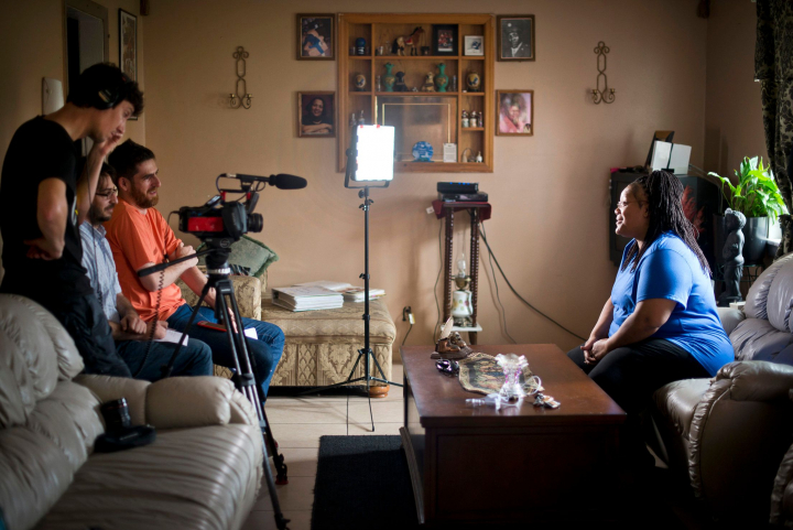Tardamos aún un tiempo en materializar este último viaje. Ocurrió, finalmente, el pasado junio. Sobre todo, gracias al apoyo de Amnistía Internacional, que se entusiasmó con el proyecto cuando se lo enseñamos y le dio el empujón que le faltaba. El último. Fueron casi dos semanas de intenso rodaje, jornadas maratonianas, y una buena panzada de kilómetros en las que pasamos por Oklahoma City y Tulsa (Oklahoma), Pierce City (Misuri), Columbus (Misisipi), Sterling Heights (a las afueras de Detroit, Michigan) y Takoma Park (Maryland, a las afueras de Washington DC). En este viaje nos juntamos Álvaro Corcuera, Guillermo Abril, Luis Almodóvar y de nuevo, como en aquel primer reportaje en Alabama para El País Semanal, Sofía Moro, que viajó con nosotros.