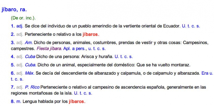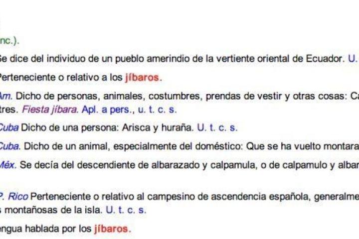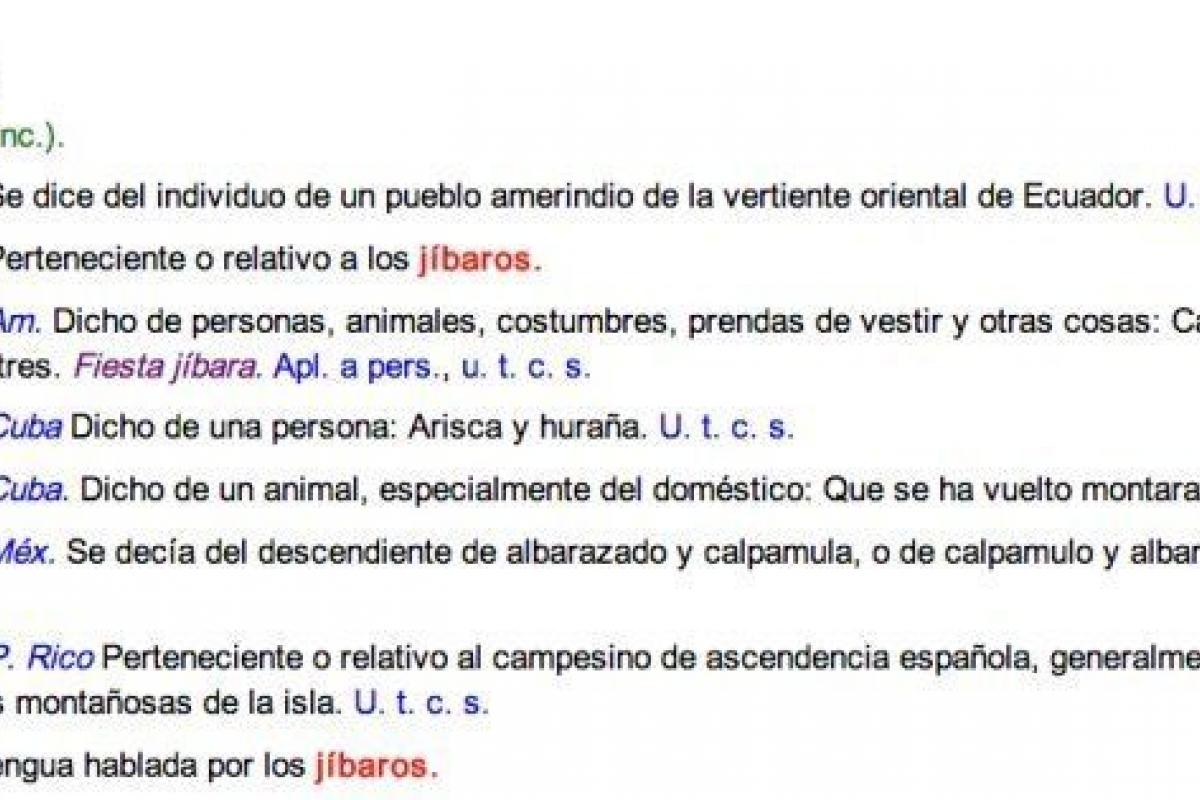 Si buscamos la palabra jíbaro en el diccionario de la RAE obtendremos este resultado: