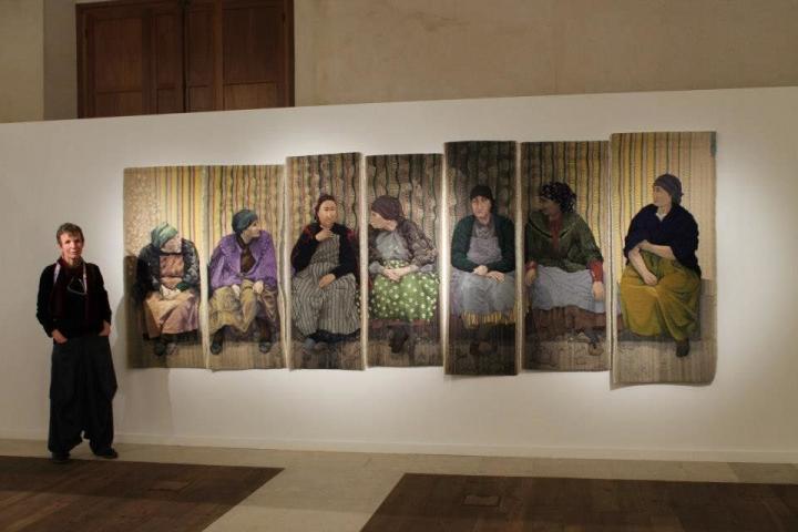 La Rectoral de Puente Pumar está en Polaciones, poco más arriba de la presa La Cohilla, la primera parte de la obra faraónica que fueron los Saltos del Nansa, realizada con la mano de obra barata que eran los presos de la derrotada República. En el último piso de La Rectoral -convertida en casa de actividades de la comarca de Polaciones con el apoyo de la Fundación Botín- el 9 de agosto asentaron sus hermosas posaderas Las Siete Marías, un tapiz pictórico que te deja muda durante minutos u horas, obra de la artista nómada, ladrona de andamios y pronto náufraga, Andrea Milde (Ennepetal, Alemania, 1963). Su abuela llegó a la cuenca del Ruhr con sus seis hijos -una de ellas Herta, la madre de Andrea, de 6 años- tras montar en un vagón de tren, cargado de soldados alemanes heridos y de refugiados, mujeres y niños que huían del avance del ejercito ruso al final de la II Guerra Mundial.