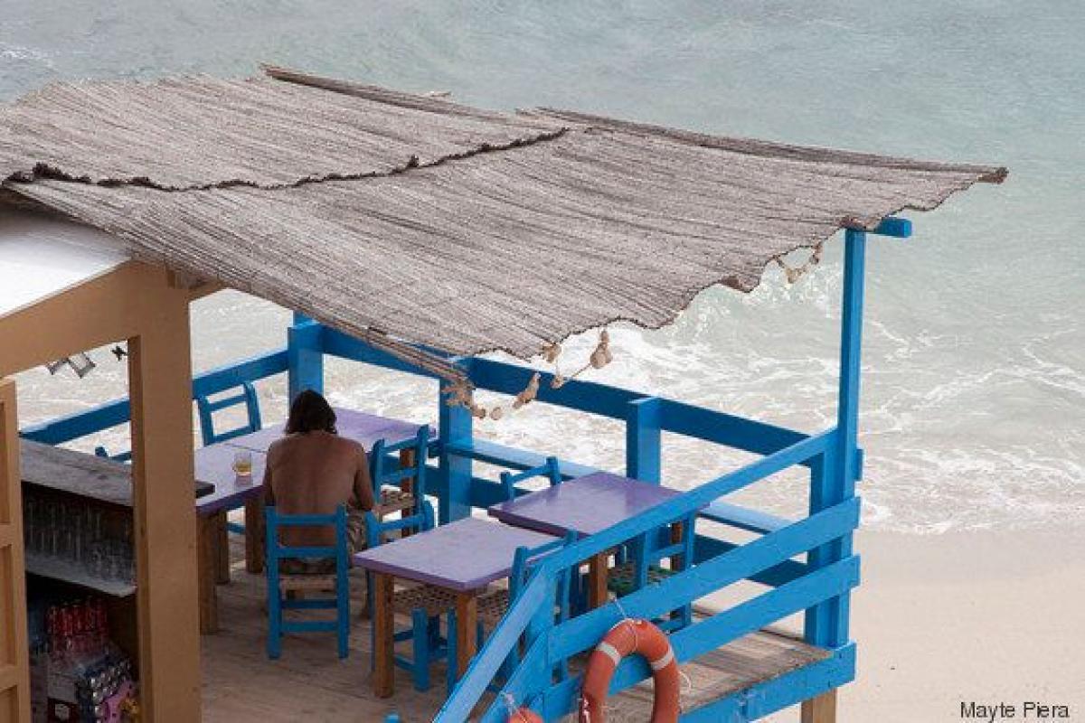 Una taberna te entra despacito, como entra una música; vas captando sus detalles hasta que exclamas el '¡creo que deberíamos probarla!'. Y exactamente eso es lo que nos sucedió en Korfós, en el Peloponeso. Cuando llegamos había muchas, pero una era azul y tenía barcas de colorines balanceándose en su muelle con redes amontonadas; tenía manteles con faros y lucecitas colgando del emparrado; tenía un grupo de pescadores desliando el desastre que le había organizado un delfín en los artes de pesca. Tenía bastante de lo que hay que tener. Tenía hasta un cartel que decía: Un corto tránsito desde la vida del mar al carbón.