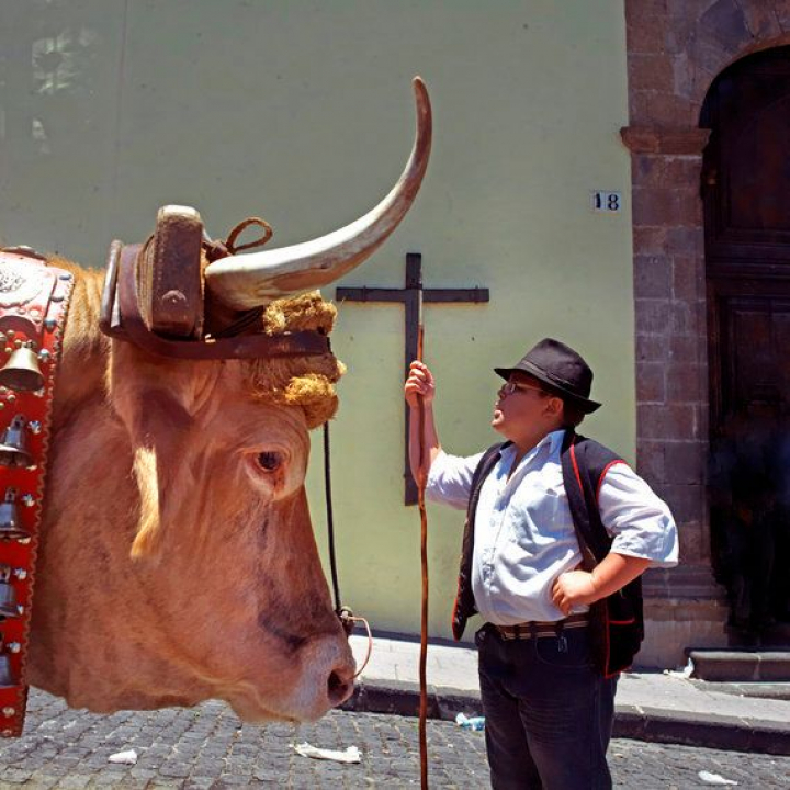 Era impresionante ver a los bueyes encarando la pendiente casi en diagonal con el suelo, utilizando sus pezuñas como frenos. Lo lógico sería que los carros los condujeran hombres hechos y derechos acostumbrados a trabajar con los bueyes en el campo y manejarlos en situaciones delicadas, pero en vez de eso muchos de los carros iban guiados por niños, orquestando y asegurando el flujo del tráfico como si fueran guardias urbanos. Huelga decir que los bueyes son criaturas pasivas y tranquilas que parecen estar, a su vez, orgullosos de participar en la romería.