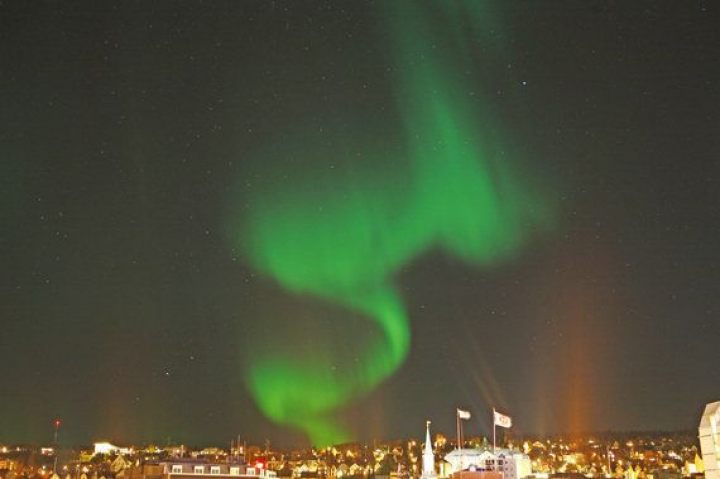Es un choque causado por el viento solar. El sol expulsa partículas cargadas de electricidad y los campos magnéticos de la tierra alrededor de las altas latitudes las atraen. El choque produce estas rápidas formaciones en movimiento. Un baile de color en el cielo que al principio parece una nube hasta que uno se da cuenta de que no lo es. Mientras el ojo humano tiene la oportunidad de apreciarlo, si se hace a través de una cámara fotográfica la experiencia se magnifica y consigues verlo como en esta foto no retocada. Dejando la lente abierta lo suficiente puedes conseguir capturar esta misteriosa energía. Cuanto menos tiempo dure el disparo, más enfocado. Eso se consigue subiendo el ISO. Experimenta.