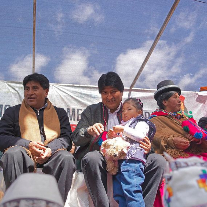 En La Paz, la capital de Bolivia, el mismo día que se había aprobado la nueva ley de trabajo infantil, yo me encontraba fotografiando un carnaval y su gente disfrazada cuando me crucé con el presidente, Evo Morales. Posó para mí con un niño en brazos.