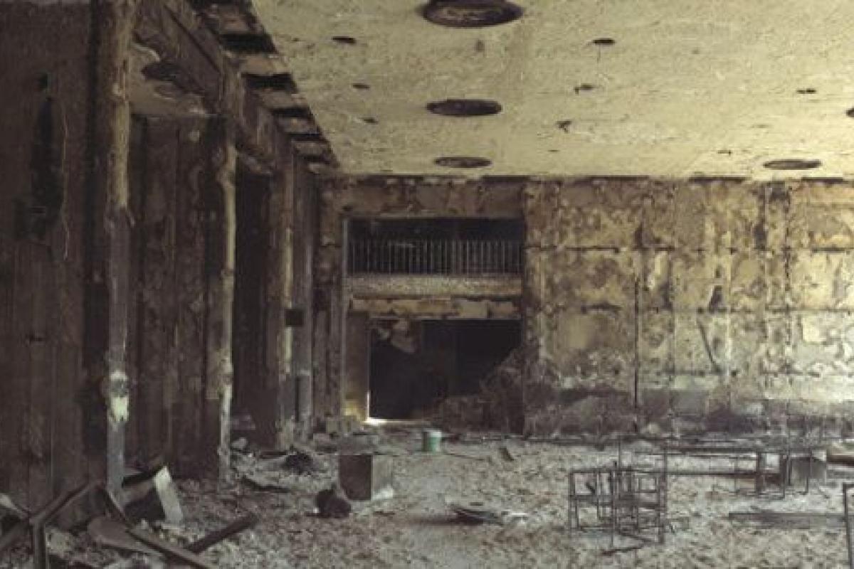 Vestíbulo carbonizado, Edificio del Partido Nacional Democrático, El Cairo, Egipto, abril 2012.