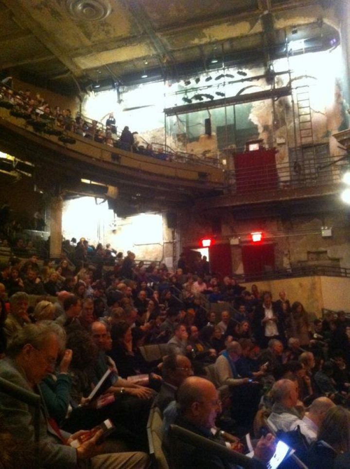 Este es sólo uno de los tentáculos de este complejo cultural que se divide en varios edificios alrededor de Lafayette Street y que cuenta con una de las programaciones más potentes de cine, teatro, ópera y danza de toda la metrópoli. En la programación teatral de este 2013 además de a Brook, encontramos a The Laramie Project Cycle de Tectonic Theater Project, Julius Caesar de la Royal Shakespeare Company y The Master Builder de Andrei Belgrader y John Turturro, de la que ya hablaremos más adelante. La antesala al teatro, es un espacio industrial, grande y alargado, con una cafetería al fondo, donde los futuros espectadores conversaban animadamente; todos ellos podrían potencialmente aparecer en una película de Woody Allen. El teatro, con capacidad para 874 personas, estaba a rebosar.