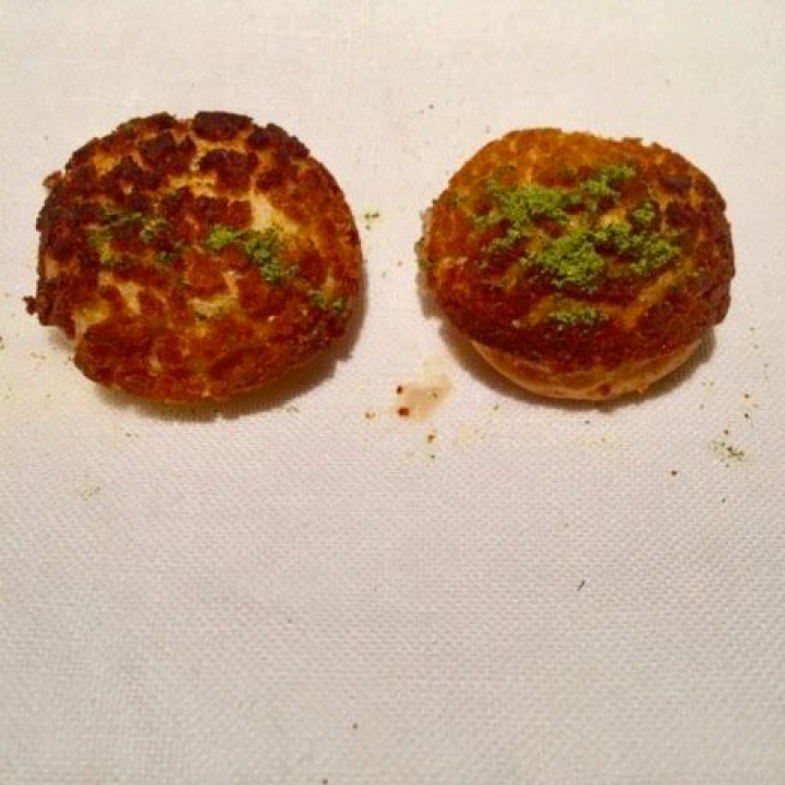 Todas las golosinas son excepcionales pero es obligatorio destacar los buñuelos. Tampoco suelo comer buñuelos, demasiado grasos y densos, pero estos son el ideal platónico de buñuelo, masa ligera y suave sin gota de grasa y una crema etérea y muy untuosa, azucarada lo justo, que inunda la boca cuando estalla el buñuelo. Todo es igual al de siempre pero todo es diferente.