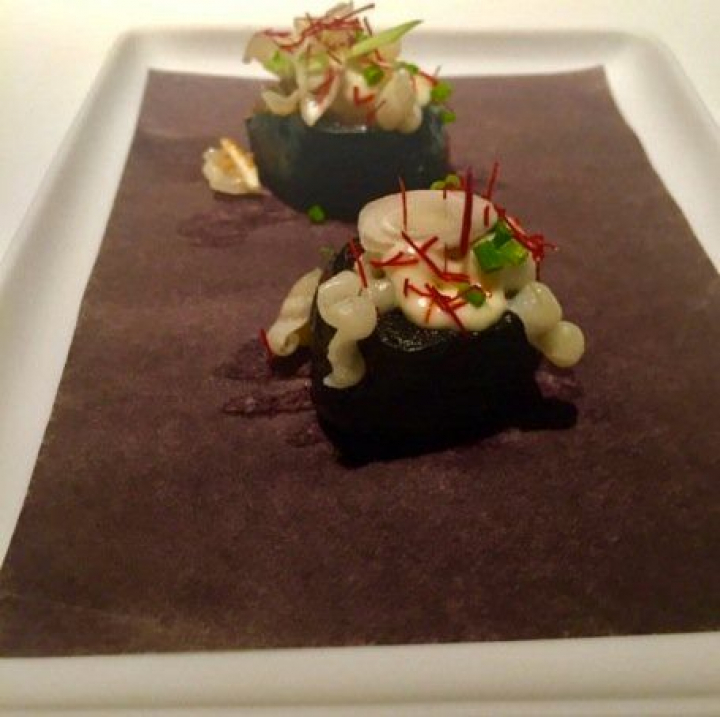 Viene después la llamada degustación de caviar Beluga que comienza con ortiguilla, atún seco y quinoa, otra buena y original mezcla de ingredientes, especialmente porque la fortaleza del atún, del caviar y no digamos de la ortiguilla, no se anulan sino que se potencian, cosa que nunca habría pensado.