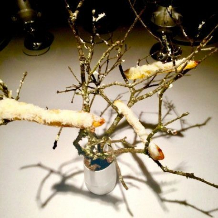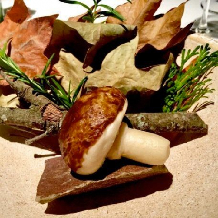 La llegada de la seta otoñal baja bastante el nivel gustativo pero no estético. Además no es cosa de Toño sino una concesión (pedida por nosotros) a su jefe de cocina que ha ganado con este plato el premio a la mejor tapa y el derecho a no parar de salir en televisión. Se entiende bien porque como trampantojo es perfecto. El problema es que se sacrifica demasiado a la belleza. Para conseguir que esta sea perfecta el pan bao que le da forma resulta demasiado basto y grueso anulando casi por completo el excelente sabor de un escaso relleno de shitake y hongos. Hay que reconocer que es más forma que fondo pero ¡bonito es a rabiar!