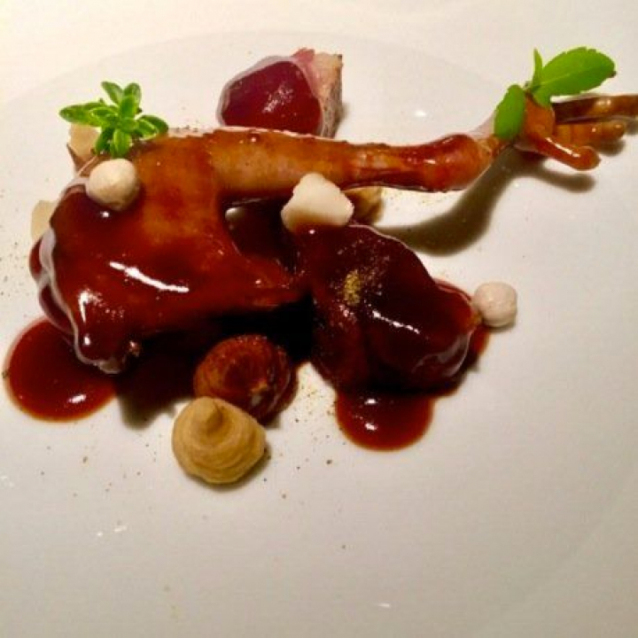 Parecida es la sensación que produce un contundente pichón con morcilla de Guadalupe y humus de nueces de macadamia. Tiene aún más aroma que sabor y cuando llega a la mesa destacan los toques ahumados y boscosos que combinan con la potencia de la morcilla y del muslo y la pechuga del pichón, ambas con un punto perfecto.