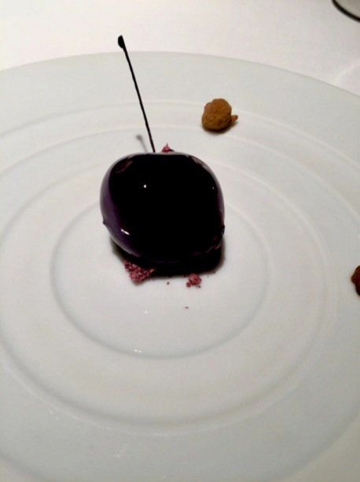 La cereza que no es cereza es ya un clásico de la casa. Alma de cereza como las esferificaciones de Adriá eran alma de aceituna. Hasta diminutas galletas semejantes a los huesecillos dan un contrapunto delicioso a la gelatinosodad de la cereza.