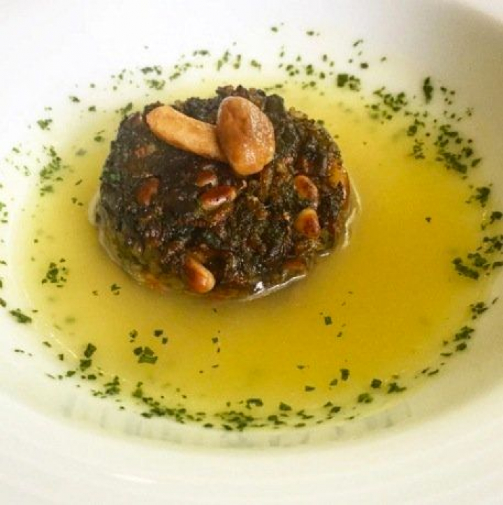 Los hongos son una preparación agradable -pero menos compleja y redonda- a base de huitlacoche, arroz, piñones y salsa arrocera de mejillón o sea, una suave salsa hecha con este molusco que sabe poco, seguramente para no arriesgar demasiado en esa acertada pero audaz mezcla de marisco y setas.