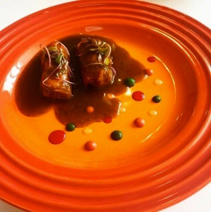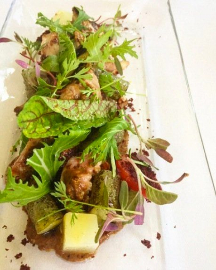 La codorniz es la vuelta a la sencillez, casi a la banalidad, porque se trata de una sabrosa pero en exceso simple ensalada de hojas verdes, chayote, café, aceitunas y avellanas. Y codorniz, por supuesto.