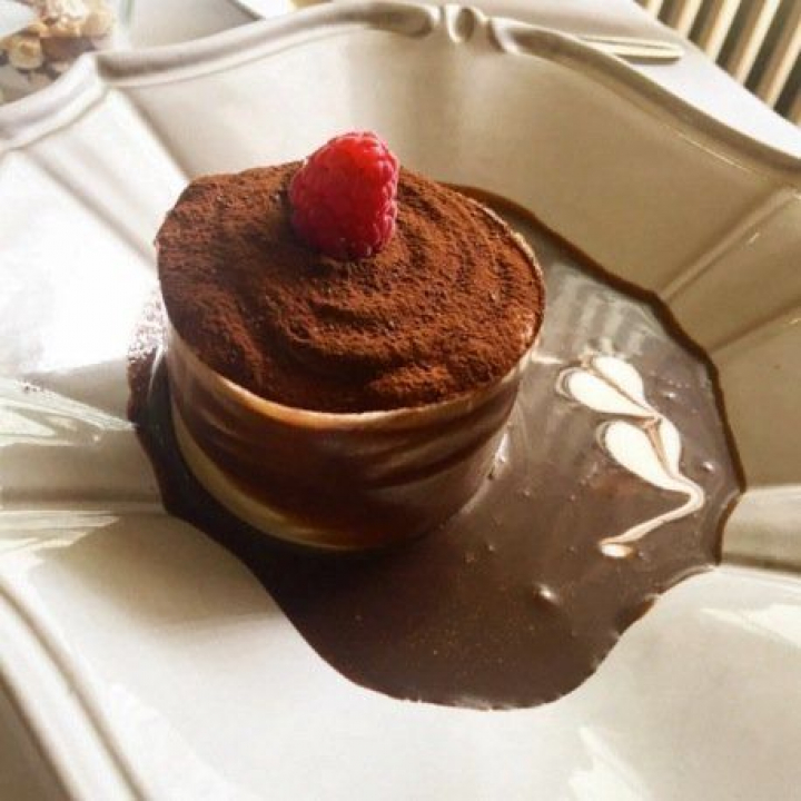 en Biko son todos maestros chocolateros. El praliné de chocolate con avellana, café y cacao es un postre tan clásico como maravilloso que navega sobre un espejo de chocolate, denso, brillante y semiamargo, que por sí solo valdría una medalla. A pesar de sus nombres no hay que engañarse. Lo que prima es el cacao aunque se perfume con esas otras cosas. Cacao intenso y aromático, una sobredosis de chocolate que entra por casi todos los sentidos. Para quien tanto sea poco (o mucho) un buen helado de avellana remata el postre.