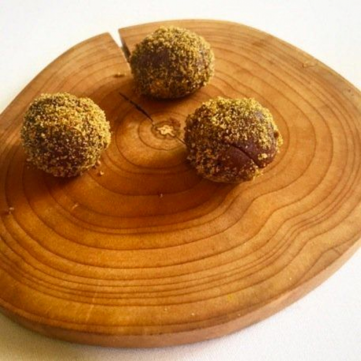 Y algo más de chocolate pero menos intens en una trufas bañadas en frutos secos para acompañar un buen café.