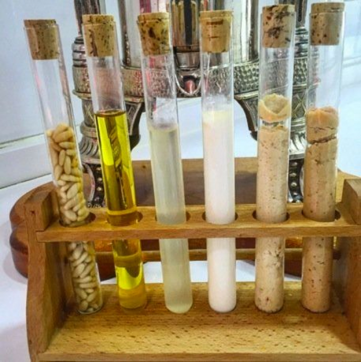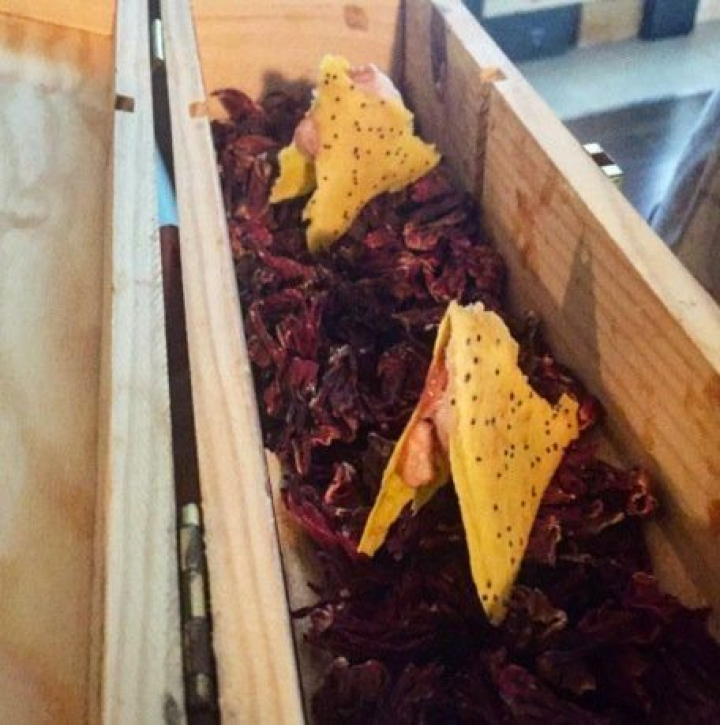 Siguen semillas de verduras asadas y encurtidas con especias de los cinco continentes, una propuesta elegantemente presentada, muy viajera y original, en la que tomates, calabacines y pepinos se mezclan con especias de todo el mundo entre las que destacan el azafrán o el ras el hanout.