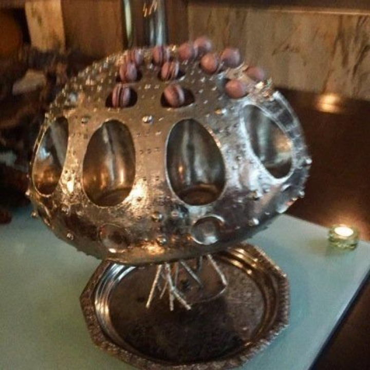 Las mignardises llegan como pequeñas gemas en un soporte de plata y más parecen orfebrería que gastronomia. El árbol de plata recuerda al coralino donde los Roca sirven los aperitivos. Y es normal ese recuerdo porque si la de los sublimes Roca es cocina ampurdanesa pura, mejorada por la del mundo entero, la de Sandoval es madrileñismo cosmopolita; pero con una gran diferencia y es que él Ampurdán siempre fue mar y tierra, opulento y toscano, mientras nuestro Madrid era, como alguien lo llamó, un poblachón manchego, sometido a sequías bíblicas y azotado por fríos y calores inacabables, una tierra orgullosa pero pobre y con una alimentacion de pura subsistencia, por lo que hacer de ella alta cocina parece más milagro que esfuerzo. Será por eso que dudo si convertir mi Santísima Trinidad de cocineros madrileños en tetrarquía o dejarla incluso en monarquia, porque Roncero es universal, Freixa catalán y Dabiz Muñoz oriental. Solo Sandoval es madrileñidad.
