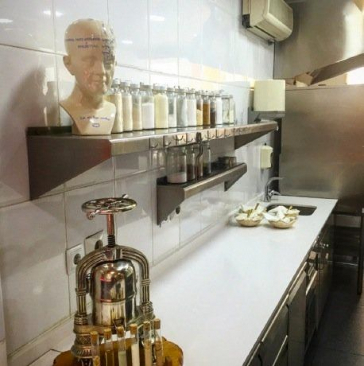 Y ser, es bastante feo, una obra que Ignacio García Vinuesa debió concebir en algún acceso febril o bajo alucinaciones discotequeras en el Golfo Pérsico. La intervención se hizo sobre el antiguo mesón de los padres y abuelos Sandoval, porque estos hermanos, como los Roca, se han mantenido apegados al negocio familiar. De él se conservan unos espléndidos hornos que, con la luminosa cocina, son los más bonito. El resto, una amalgama de materiales caros, lámparas descomunales que dan poca luz, sillones que torturan al comensal y diversos efectos especiales francamente desconcertantes.