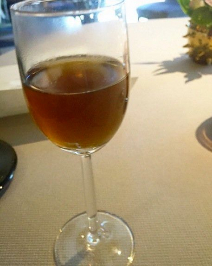el corte helado de Pedro Ximénez una especie de postre del aperitivo, no sólo por el helado sino también por su dulzor de vino de sobremesa.