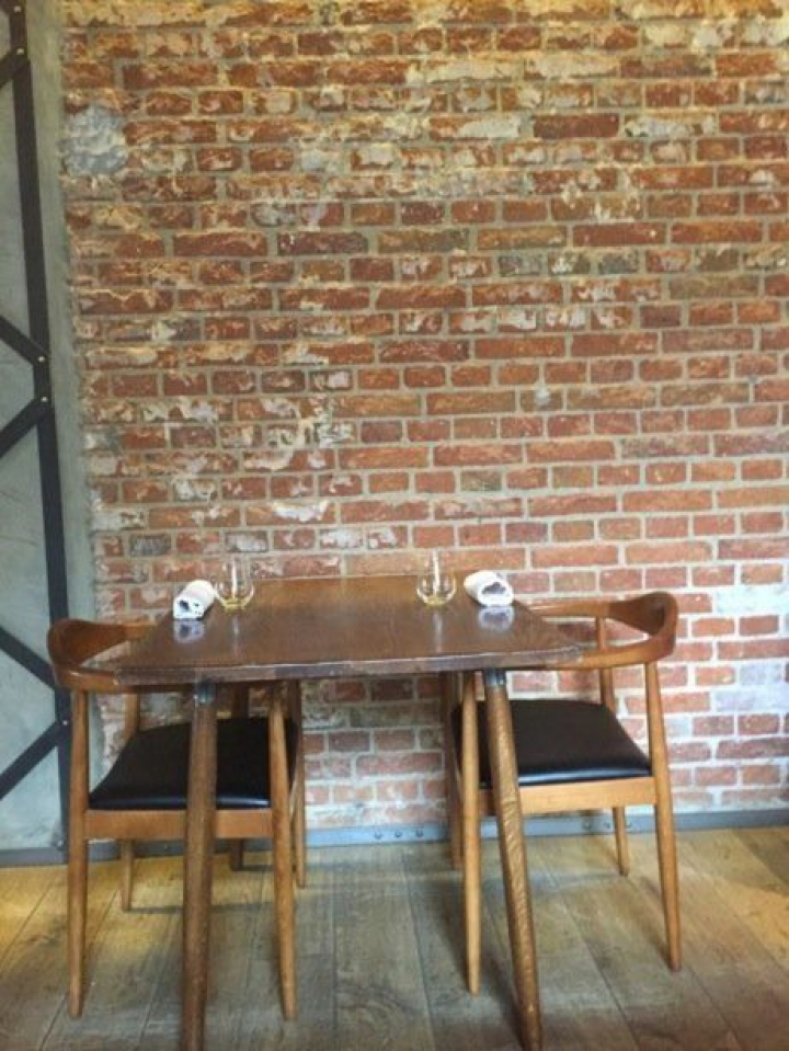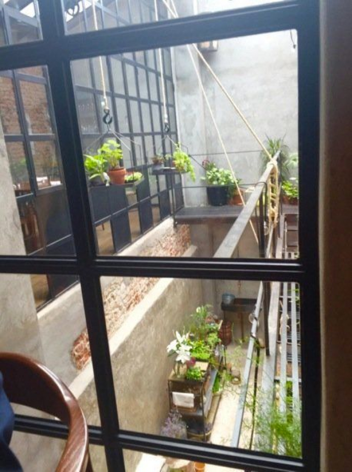 Se accede primero a un bar con sillones disparejos y gastados colocado en torno a mesitas bajas. Al fondo del local, una cocina desnuda y abierta. Entre medias un restaurante que parece traído de otro país, un espacio austero y sobrio que semeja un almacén a medio derruir, una hermosa nave de paredes desnudas y patio interior que es huerta y jardín. Un lugar neoyorquino y despretencioso realmente diferente, en el que la cocina está dentro del restaurante y en la que Diego y su equipo se afanan en un trabajo intenso y absorbente.