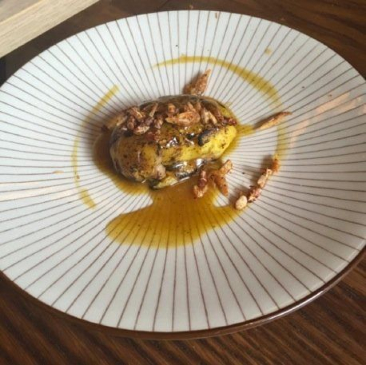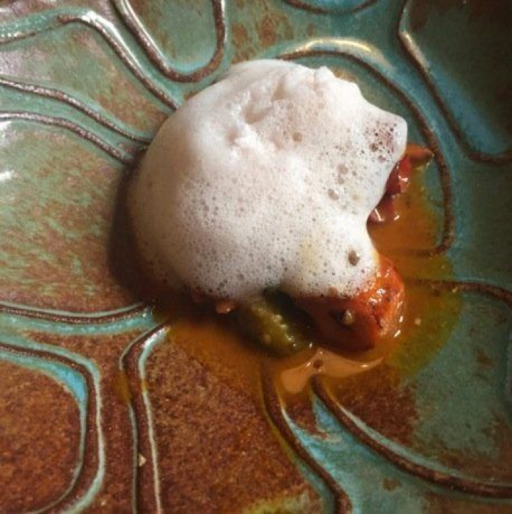 Uno de los grandes platos de Diego es el pulpo a la llama, mexicano también donde los haya por causa de esa delicia llamada tomatillo y que envuelve el pulpo, escondido a su vez en la espuma resultante de la propia cocción.