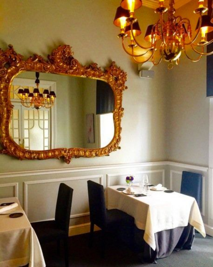El restaurante sigue siendo algo tristón a pesar -o quizá por eso- de su elegancia de grises y blancos y de estar decorado por el siempre refinado Nacho Vicens. Será que la casa en que se asienta, tan bella como decadente, tan recargada como una anciana llena de afeites, le contagia su decadentismo fin de siecle y ese aire cansado y marchito del Madrid decimonónico.