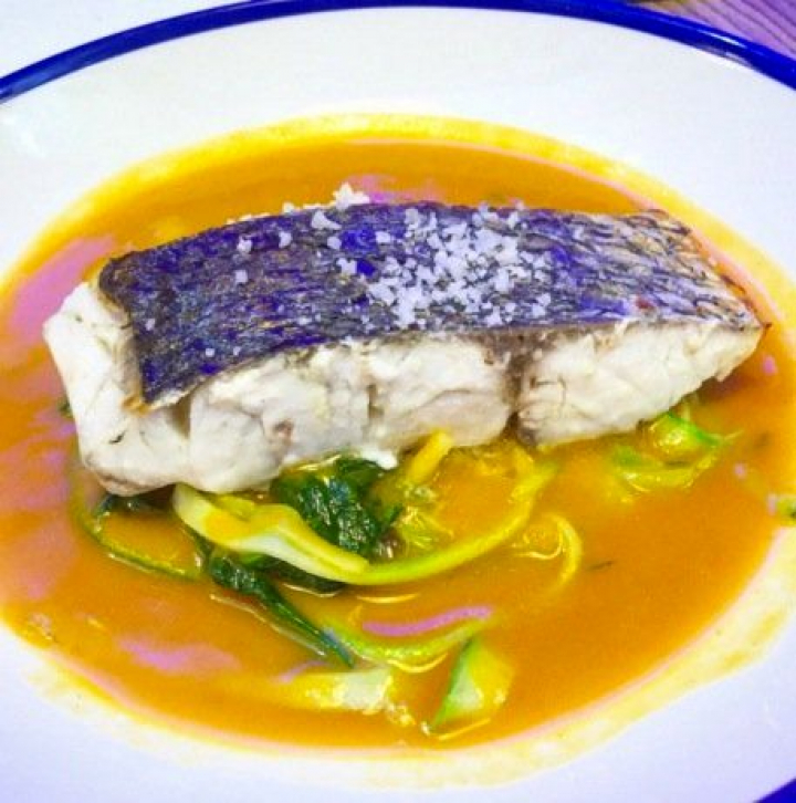 La caldeirada de pescado del día pronto me hizo olvidar la mediocridad del pulpo. Era de una corvina extraordinaria, su punto era perfecto y el toque picante aún más. Se bañaba en un riquísimo caldo de pescado y verduras y reposaba en un etéreo puré de patatas además de sobre grelos y tiras de calabacín. Deliciosa.