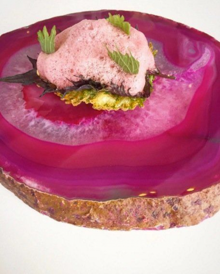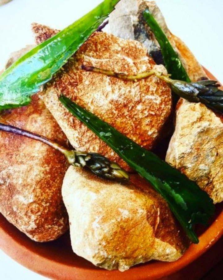 Excitan el paladar que después se limpia con unas hojas de la tierra de agradable sabor, colocadas en un agreste escenario: naim del pastor y kalanchoe.