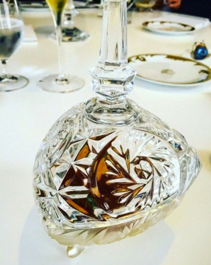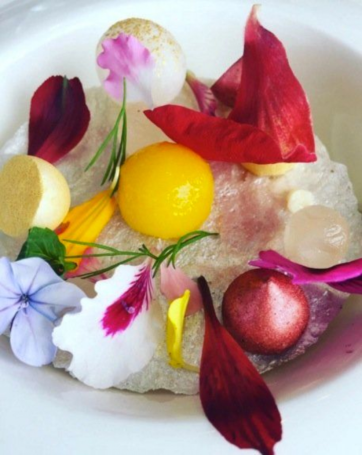Llegados aquí todo acaba y casi no podemos mirar atrás por exceso de sensaciones y abundancia de perfección y belleza. Hemos gozado con una culinaria extensa y absolutamente personal y lo hemos hecho casi en soledad porque tan solo ocupábamos el restaurante cinco comensales, los de nuestra mesa. La gran cuadrilla de casi treinta y cinco personas estaba dando lo mejor de sí solo para nosotros. Será la lejanía, que los precios no son baratos (190€ solo el menú) y que la tiranía del menú degustación impone cuentas muy altas y más de tres horas de almuerzo, lo que espanta a muchos que sí podrían venir si hubiera carta. Así se entiende que el mago de tanta belleza y armonía no estuviera, que ande pregonándola en lugares donde tenga más concurrencia y devotos, pero así son las cosas de la magnificencia y yo también vi una vez los Rembrandt del Louvre o el Leonardo de la NationalGallery de Washington completamente solo porque, al fin y al cabo, no estaban en el circuito.