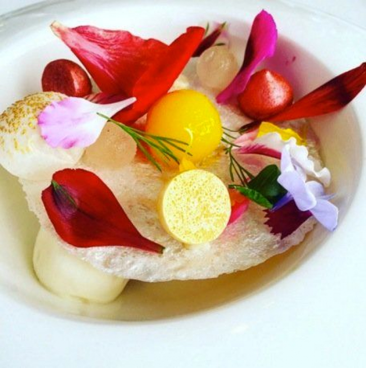 El 5° Acto es el más dulce y en lo que respecta al primer postre el más bello: flores raras 2015 es una leve delicia a base de papel de arroz, mango, lichis y flores trabajados en cremas, merengues, crudos y crujientes en un equilibrio perfecto.