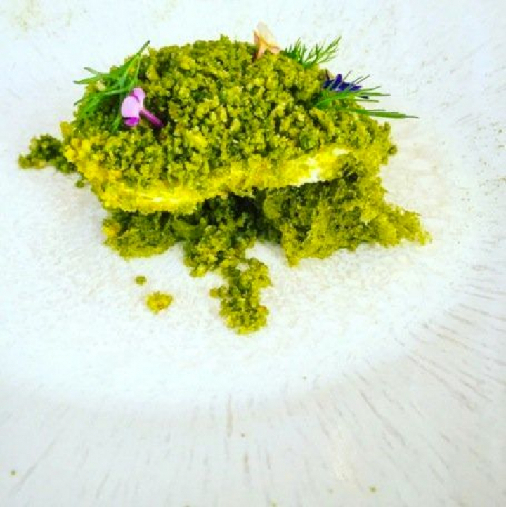 Más de estas deliciosas esferas vegetales en una coca de tomate 2015 que lo recibe en polvo seco y lo soporta sobre una fragilísima oblea.