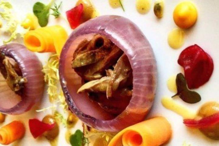 El salmonete sobre jugo de cebolla es todo lo contrario, una preparación mucho más suave en la que el sabor dominante -como debe ser- es el de este maravilloso pescado rosa argentino. Todo lo demás son acompañamientos que lo realzan sin oscurecerlo.