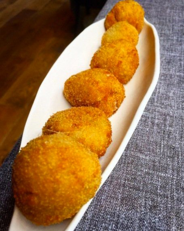Empezar con unas jugosas y crujientes croquetas de setas de primavera, de impecable bechamel, es una gran opción,