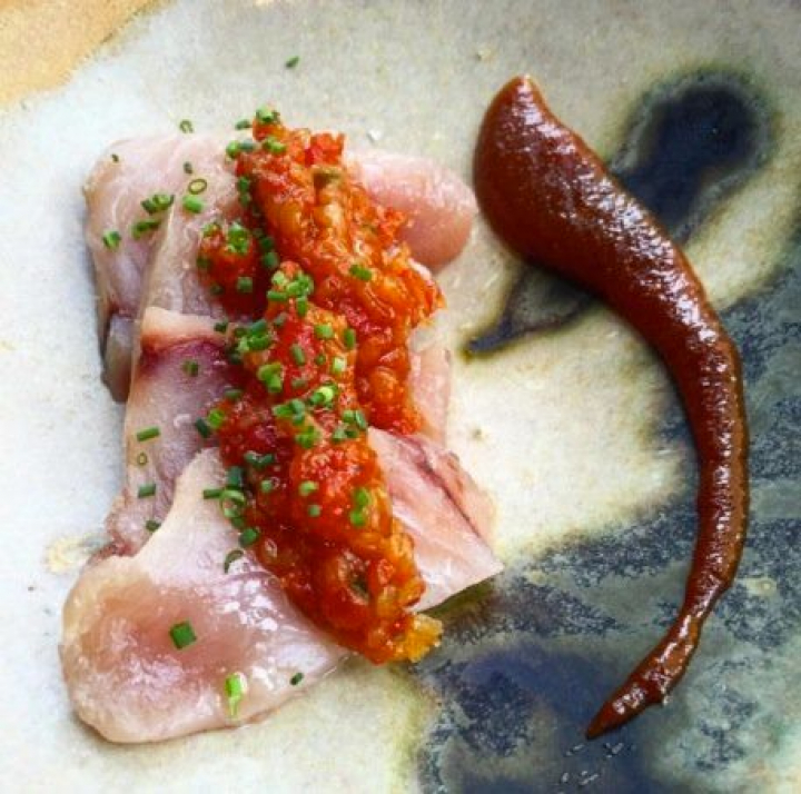 Igualmente excepcional es la calidad del bonito marinado con sofrito de jalapeño y crema de miso. Habiendo leído lo del miso y el jalapeño no hay que añadir que se basa además en los mismos principios de fusión elegante y contenida del plato anterior.
