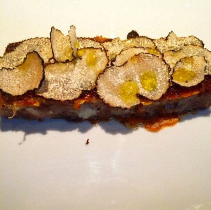 Esa pequeña mediocridad desapareció con la primera entrada, un eterno rulo de ternera con pistachos y foie perfectamente ejecutado y acompañado por unas rebanadas de pan tan refinadas como increíblemente crujientes y delgadas. Si el diablo está en los detalles, la gloria también.