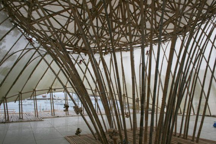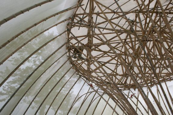 Pabellón arco de bambú de la universidad Shiga Kenritsu y el laboratorio de Koichi Toki en Kesennuma-Miyagi. Foto: AG