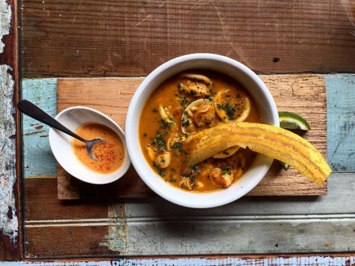 El guacho es una sopa que lleva ñame, yuca, culantro, arroz, verduras y alguna carne; rabo de cerdo...y cómo no, guandú. También se le puede añadir leche de coco y ajichombo -¡así está tremendo!-, y se sirve tradicionalmente en vasijas vegetales hechas de huacales, taparas o totumas.