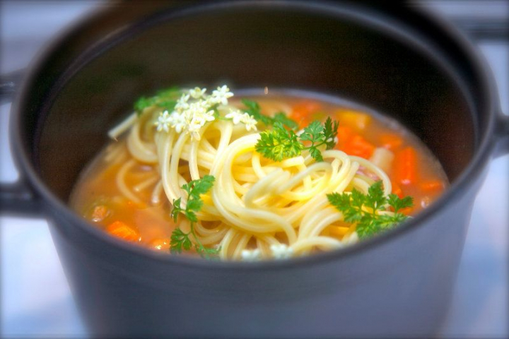 En esta sopa, una sola fragancia debe encantar a vuestras papilas, que es el aroma de la albahaca. Curnonsky decía sobre este tema: "La mejor cocina es cuando las cosas tienen el gusto de lo que son..."