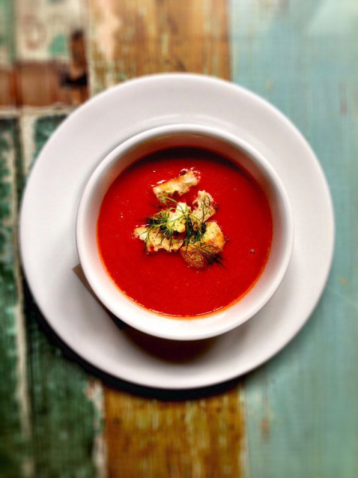 Aunque podemos encontrar tomates durante todo el año, los de mejor calidad son los que se recolectan en los meses de verano, en particular de agosto a octubre. Por eso aprovecho para dejar aquí mi versión de la Campbell's Soup de Warhol, con toques mediterráneos.