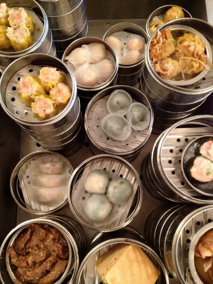 El servicio de desayuno es exactamente igual al de cualquier chiscón pekinés. Carritos cargados de vaporeras metálicas repletas de bocaditos recien hechos pululan por el salón. Cuando pasan a tu lado, solo tienes que elegir. Y no es fácil. Ja kao, siu mai, yee chee kao, sin ha fan ko, wotip, ham pao de puerco, nabo a la plancha, empanadillas, carne con jengibre, chon fun, wonton frito, callos guisados, panecillos al vapor rellenos... Si no te sabes los nombres no pasa nada. Basta con señalar con el dedo y el camarero llenará la mesa de manjares en un segundo. Dim sum se puede traducir como "pide hasta satisfacer a tu corazón". Así que eso hicimos. Y aquello se convirtió en un carrusel de maravillas que regamos con unas tazas de te verde. Nuestro corazón salió satisfecho, doy fe, y nuestros estómagos también.