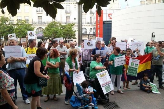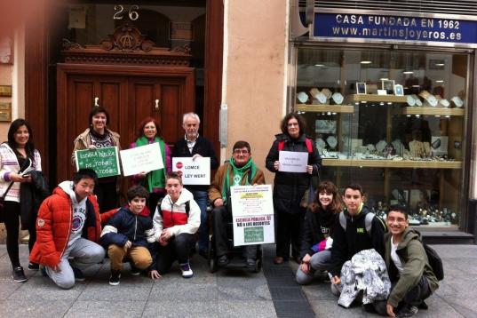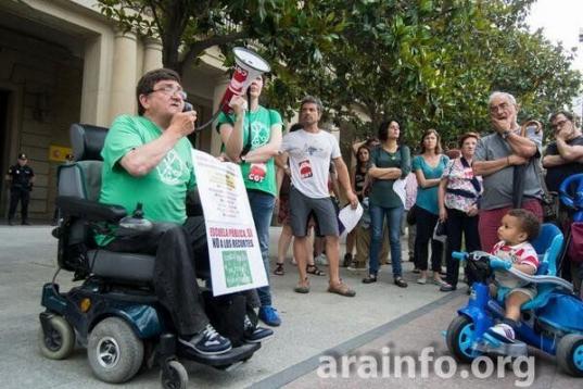 El día 3 de julio habíamos sido juzgados los ciudadanos Marisol Ibáñez, Marga Ribas y yo bajo la acusación de negarnos a abandonar el portal de la vivienda de la Consejera de Educación, Universidad, Cultura y Deporte del Gobierno de Aragón, Mª Dolores Serrat Moré, adonde acudimos diariamente cada mañana desde hace más de un año con carteles en defensa de la educación pública y laica y en contra de los recortes en educación perpetradas desde la Consejería aragonesa de Educación. Debido a ello, entre otras cosas yo fui sancionado tres veces por vía administrativa, y Marisol y Marga, también recibieron una multa. Finalmente, el 3 de julio de 2014 fuimos juzgados por ello en Juicio oral y público de Faltas contra el orden público.