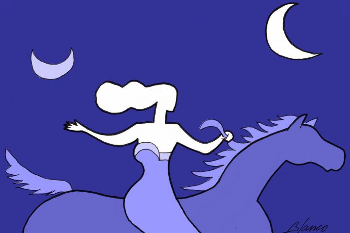 Si tuviera que hacer caso de la etimología convencional, esa que afirma que el flamenco proviene del holandés y jarana de ninguna parte, a y mazon equivaldrían a mujer sin pecho. De ahí nace el falso mito de las guerreras que se amputaban un seno para que no le estorbara al tensar sus arcos. Yo prefiero creer a Robert Graves, quien le atribuye origen armenio a la palabra amazona: "mujer luna". Como Pasífae. La mujer que brilla. La mujer que engendró al minotauro. El animal más humano. Más incluso que muchos hombres que matan y golpean a sus mujeres luna. Como ella. Hoy se ha vuelto a mirar al espejo. Se acepta. Distinta. Asimétrica. Y se siente luna blanca en mitad del cielo negro. Amazona. Guerrera. Viva. Mujer.