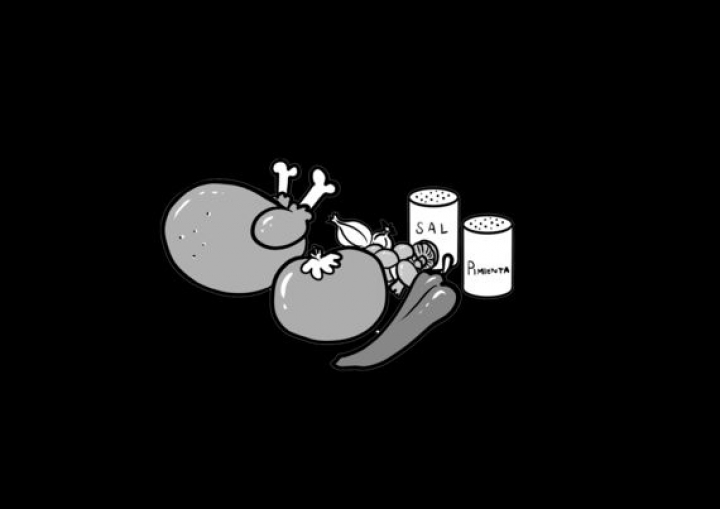 Para elaborar su plato, cada uno de los cocineros cuenta con un pollo, un tomate, un pimiento rojo, champiñones, sal, pimienta, cebolla y ajo.
