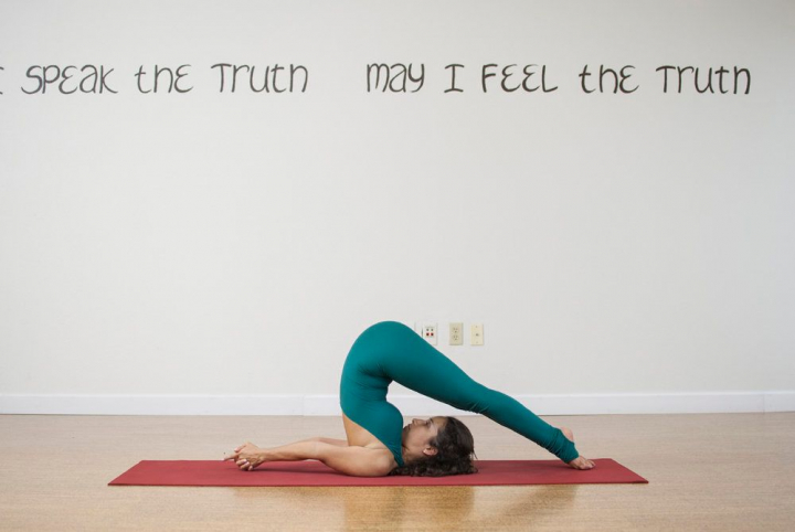 Desde ahí mismo, donde te encuentras, lleva las piernas hacia la cabeza, y si ves que los pies no llegan a tocar el suelo, coloca tus manos sobre la región lumbar para que no haya sobrecargas innecesarias. Halasana es una postura excelente para mejorar también el tránsito intestinal y aliviar la tensión de la zona lumbar. ¡Ojo! Si padeces cualquier lesión en el cuello, esta postura no te conviene.