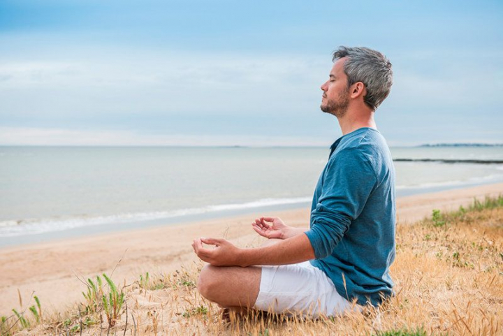Siddhasana. Siéntate en el suelo sobre tu toalla doblada varias veces, como si fuese un cojín, dobla una pierna y acerca el talón a la pelvis. Ahora dobla la otra pierna y ponla por delante de la primera, los dos tobillos cerca el uno del otro. Deja que desciendan las rodillas hacia el suelo. Estira tu espalda hacia arriba y lleva los hombros hacia abajo y atrás. Apoya las manos en los muslos y vuelve las palmas hacia arriba.