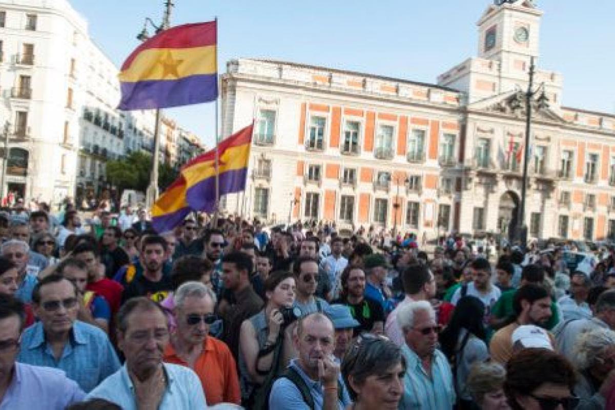 El 19 de junio, rondando el mediodía, fui a la Puerta del Sol de Madrid a gritar mi republicanismo, y mi deseo ferviente de que se emprenda un proceso constituyente que convierta a mi país en una democracia popular. Me cubría los hombros con una bandera republicana.