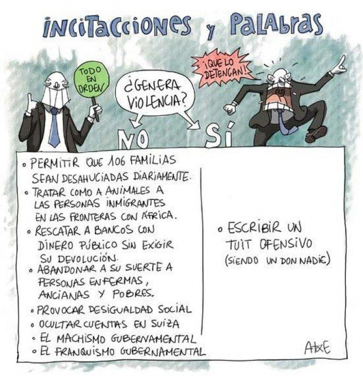 Incitacciones y palabras Atxe 27/05/2014 a las 04:41 Actualizado el 26/07/2014 a las 09:12 Comment COMENTAR> Facebook Twitter Whatsapp Email 5c8b3dd62300005300e7e5aa Atxe Noticias viñetas violencia humor gráfico atxe El HuffPost para Bodegas Avelino Vegas Avelino Vegas propone tres maridajes para estas navidades de la mano de los hermanos Torres Newsletter Recibe las notificaciones más importantes en tu correoapúntate a nuestro boletín Últimas noticias Adiós al correo tradicional en 2026: el primer país del mundo quiere abolir las cartas y se espera que los demás sigan su ejemplo Una estadounidense que lleva 6 años en España define la gran diferencia con su país con una frase para enmarcarla: "Allí la gente sueña, aquí vivís los sueños" Compra acciones por valor de 1000 euros, se olvida por 30 años y cuando las revisa la cantidad de dinero le deja sin palabras Una española se va a Japón y prueba la paella en un restaurante español: "Que me lleven presa, si no está mala, ¿qué le hago?" Prisión sin fianza para la madre y su pareja por el asesinato del niño de Garrucha Enseña lo que hace con su árbol de Navidad y se monta la marimorena: las reacciones se cuentan por cientos Piden pensárselo dos veces antes de comer uvas sin semillas estas Navidades: hay algo sobre el envejecimiento que no te están contando Abre un Calendario de Adviento de supervivencia y alucina con lo que tiene dentro: "Jamás vi uno así" Jerónimo, experto farmacéutico, sobre cómo proteger los labios del frío: "Hay una planta especialmente potente, 'la sangre de dragón" Descubre 5 paquetes "entregados" en la basura, aparecen 50 personas reclamándolos y el repartidor puede ser el más inocente de la historia