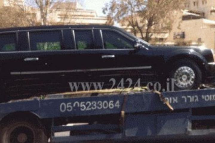 El Cadillac de Obama, en la grúa. Foto: www.2424.co.il